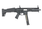 The UTR family replica of the submachine gun based on the AR platform made by Double Eagle. The main elements, such as the upper lower receivers, the stock and the handguard, are made of reinforced nylon instead of metal alloys, so the replica weighs only 2.5 kg. Modern modular handguard with compatible accessories included (rail covers, hand stop and Picatinny accessory rails). The ambidextrous fire selector, charging handle, bolt and mag release makes the pistol friendly to both right and left-handed users. 6-Position telescoping side folding stock with adjustable cheek rest and space for a battery (100mm max length of battery).