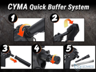 New to the CYMA lineup is the Quick Buffer System (QBS) which allows for rapid spring changes that can be done by hand. This efficient new system only requires the removal of your buffer tube castle nut to gain access to the captured guide rod and spring. No longer is it necessary to break open your receiver or even remove your stock from the buffer tube to change a spring.